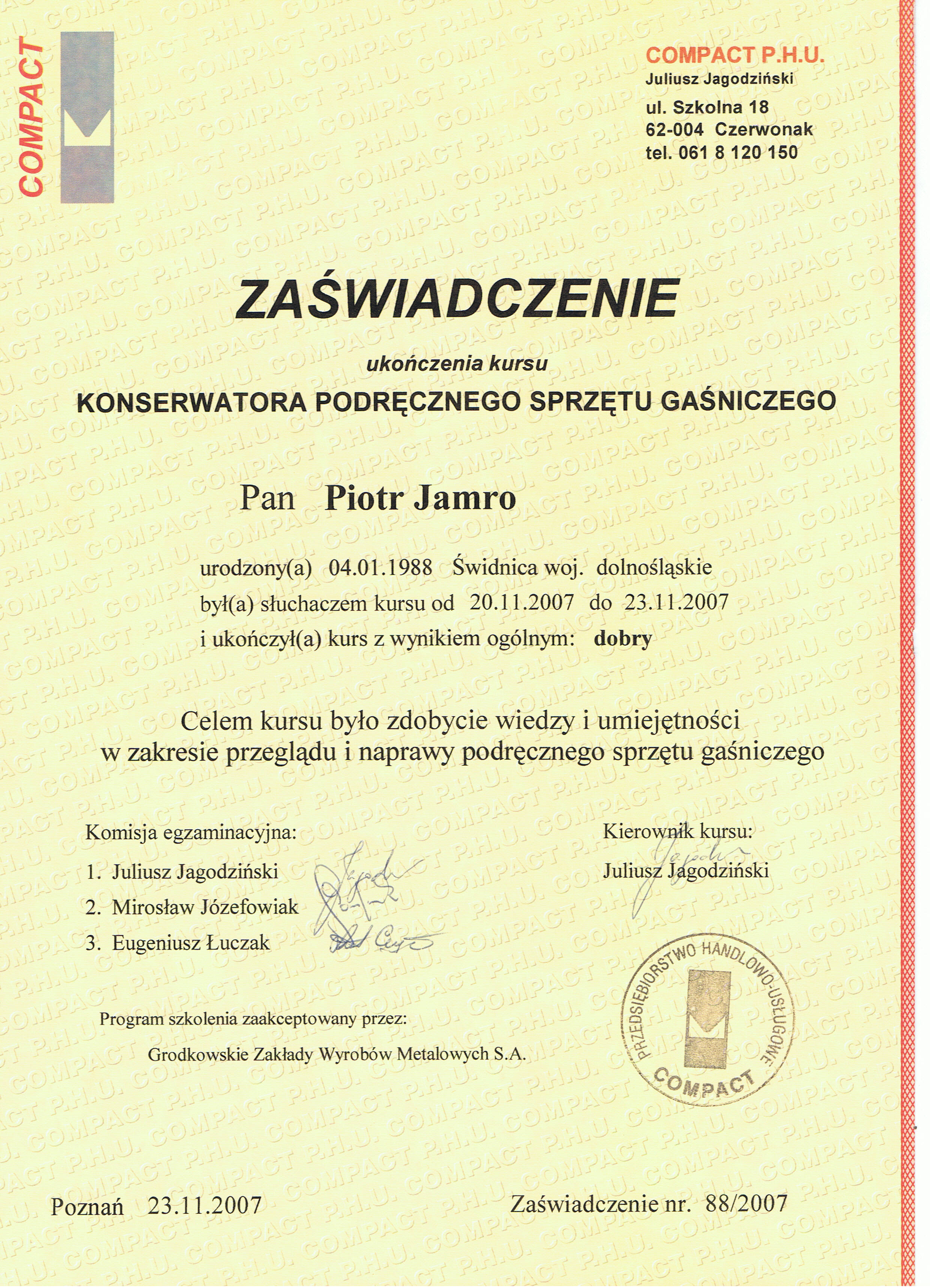 - legalizację, przeglądy, konserwację oraz remonty gaśnic i agregatów gaśniczych